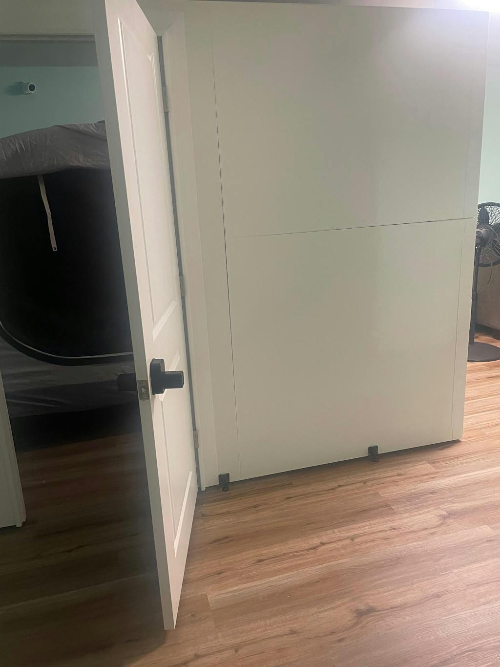The included swing door kit provides a premium, real-wall feel with increased privacy compared to our accordion door option.