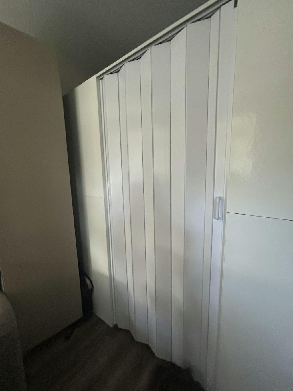 The Mounted L-shaped Partition Wall With Door Kit allows you to easily install a temporary or permanent room with an included accordion door anywhere in your home or business.